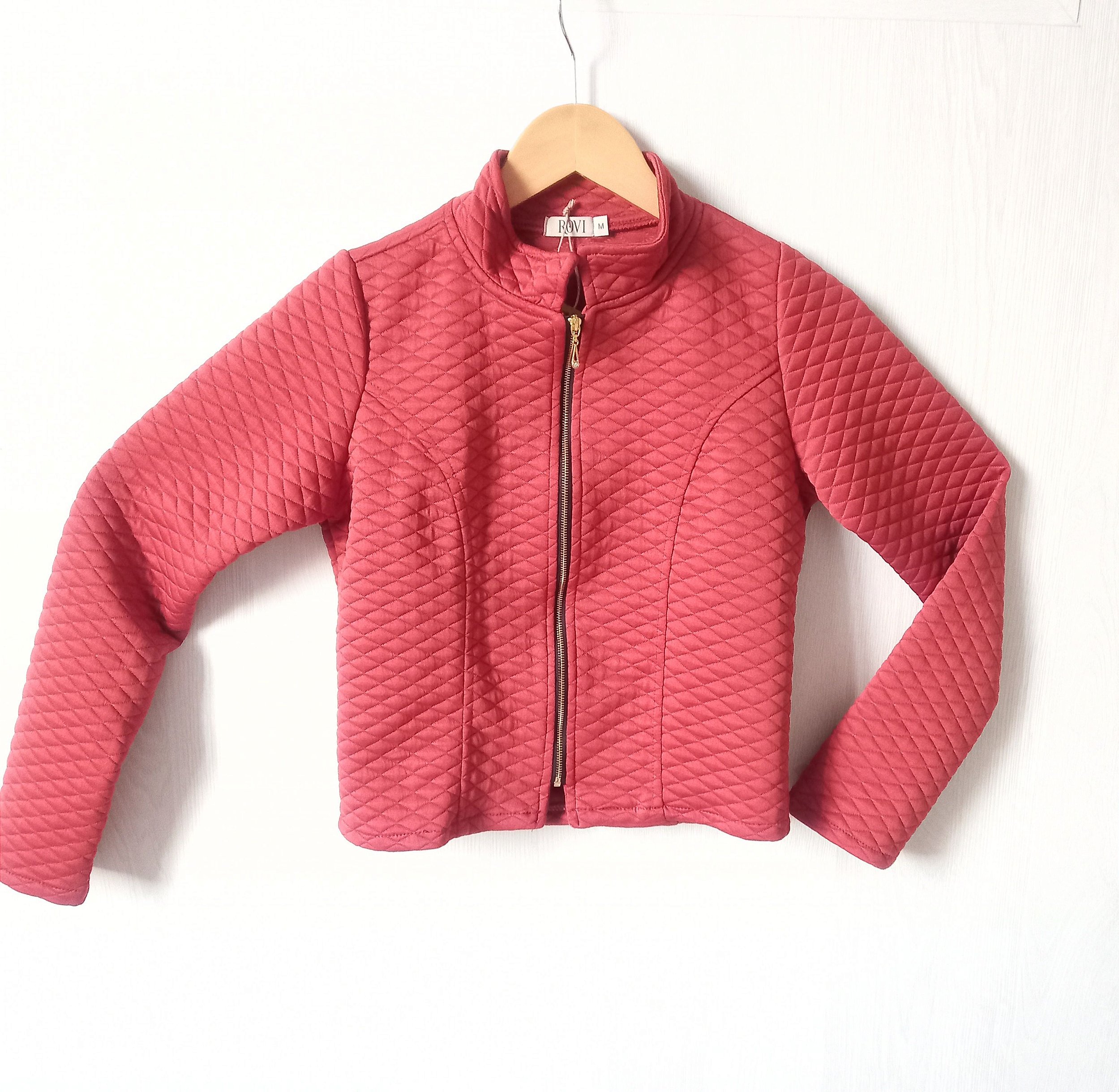 O modelo é jaqueta matelassê com fechamento em zíper, Manga: longa