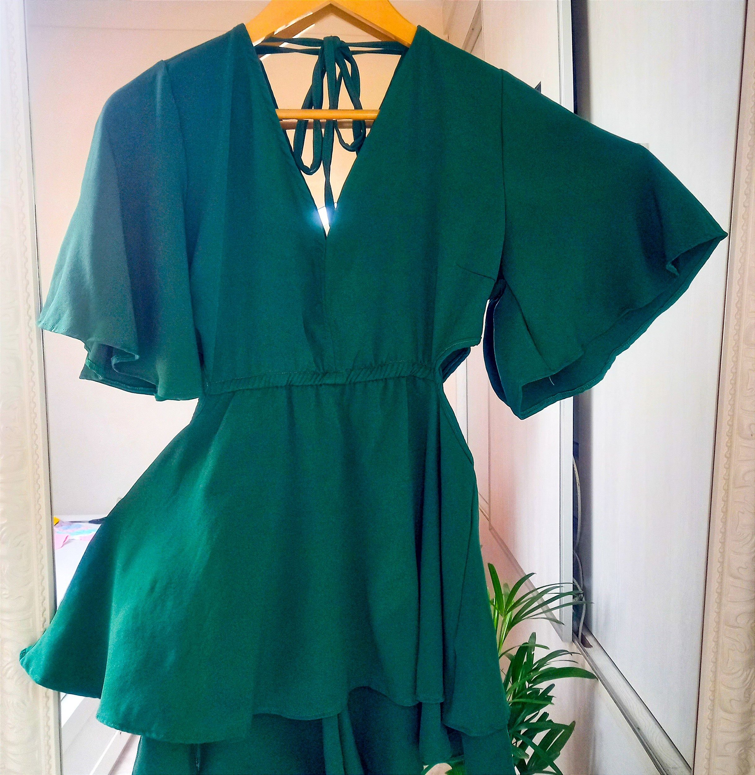 Macaquinho soltinho acinturado com elástico na cintura e detalhe imitando vestido.